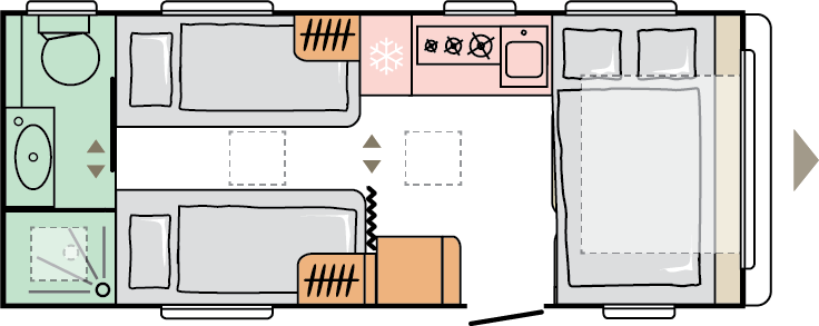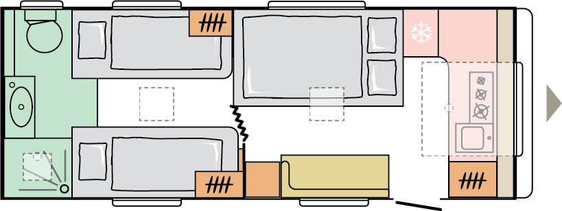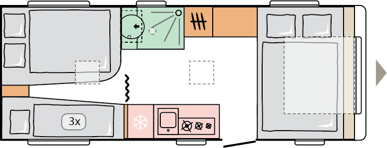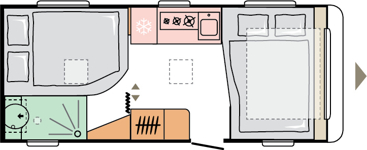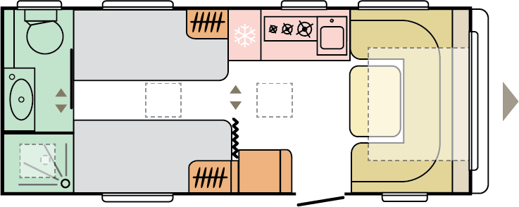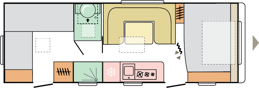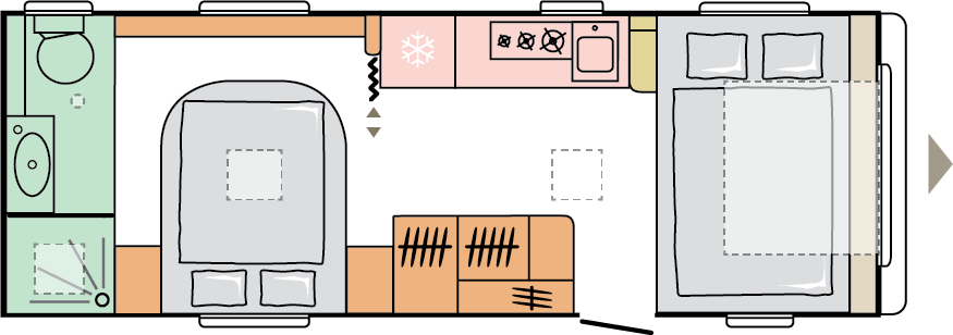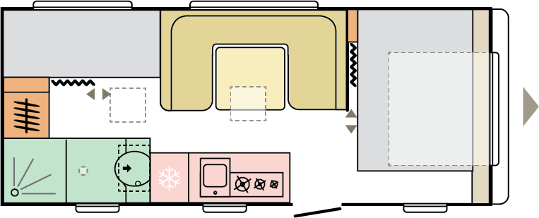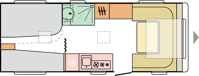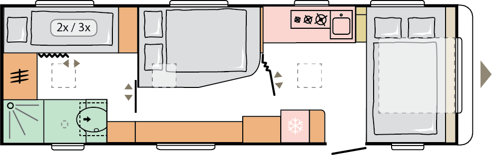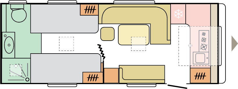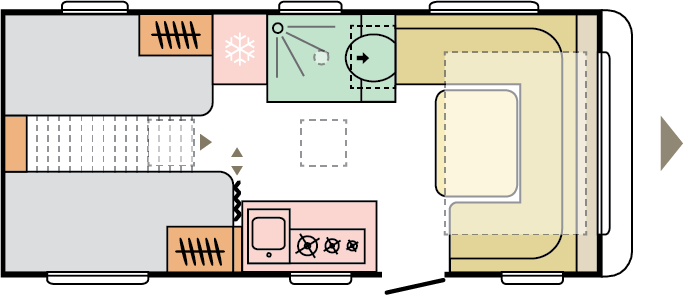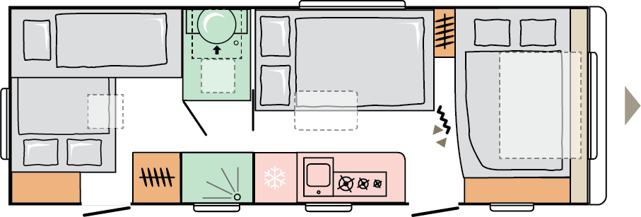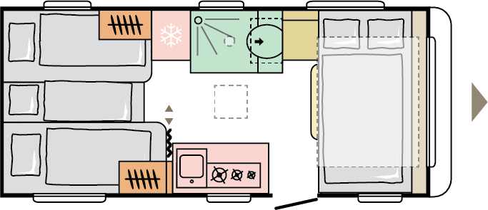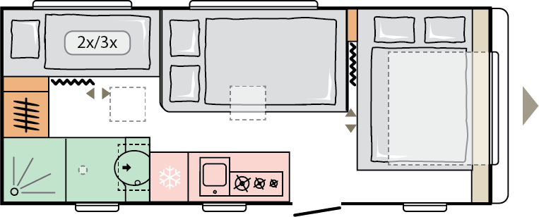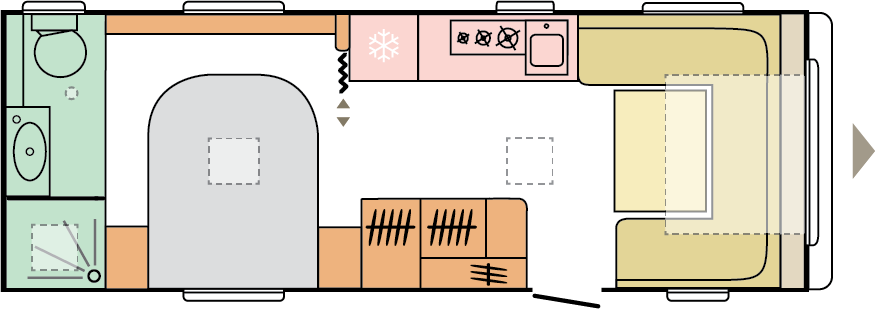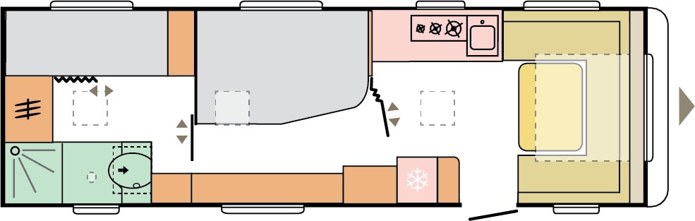 Våra husvagnar är noggrant utformade för att ge dig en rymlig och hemtrevlig känsla, med stilrena och smakfulla interiörer.