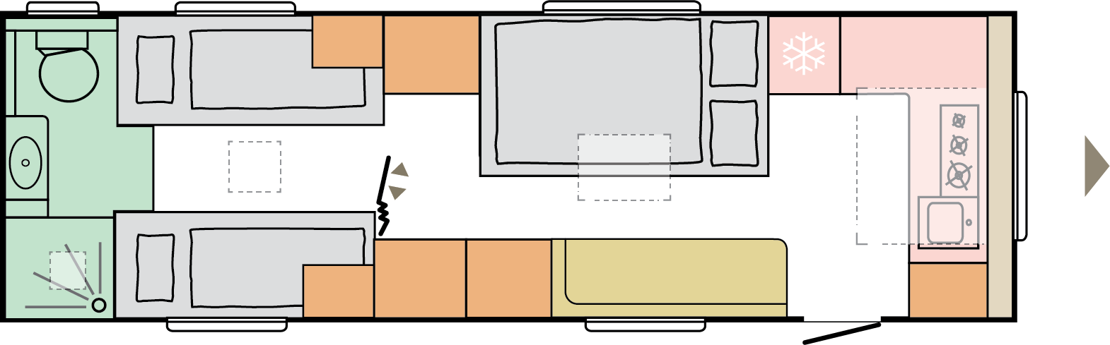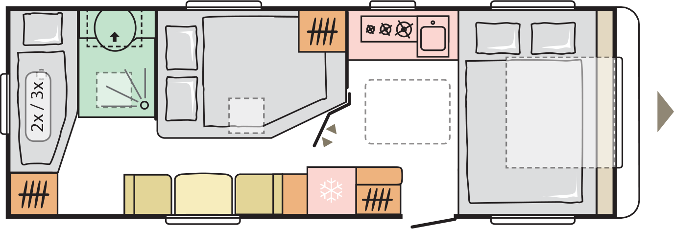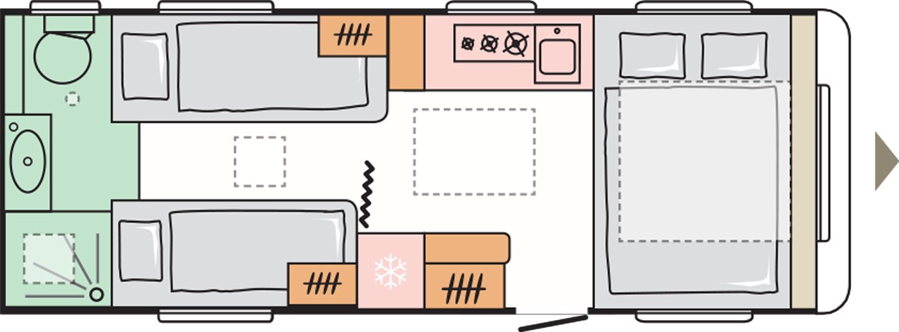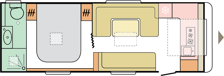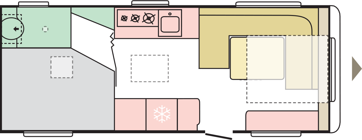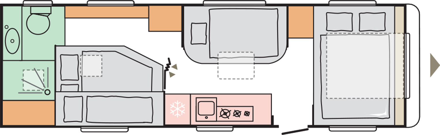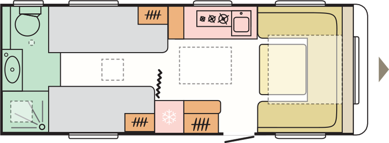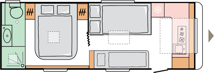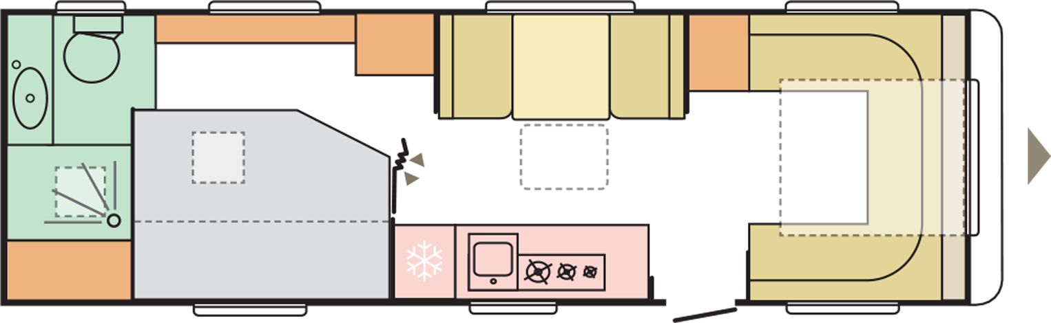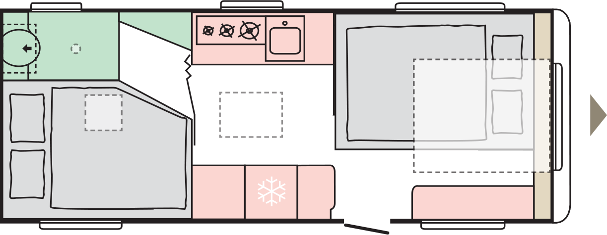 Våra husvagnar är noggrant utformade för att ge dig hemtrevnad, med en rymlig och elegant interiör.