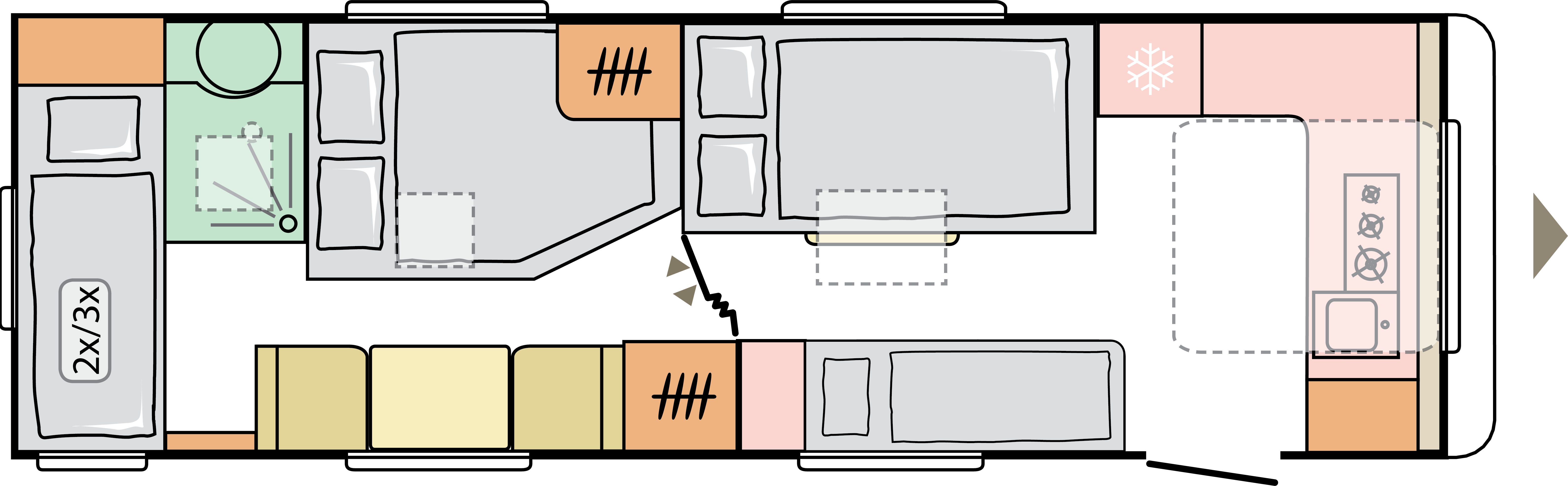 En robust konstruktion och chassiintegration för en säkrare hantering. Optimerad vikthantering, med AL-KO som våra chassipartners . En kombinerad lösning med GFK-kaross och prestandachassi.