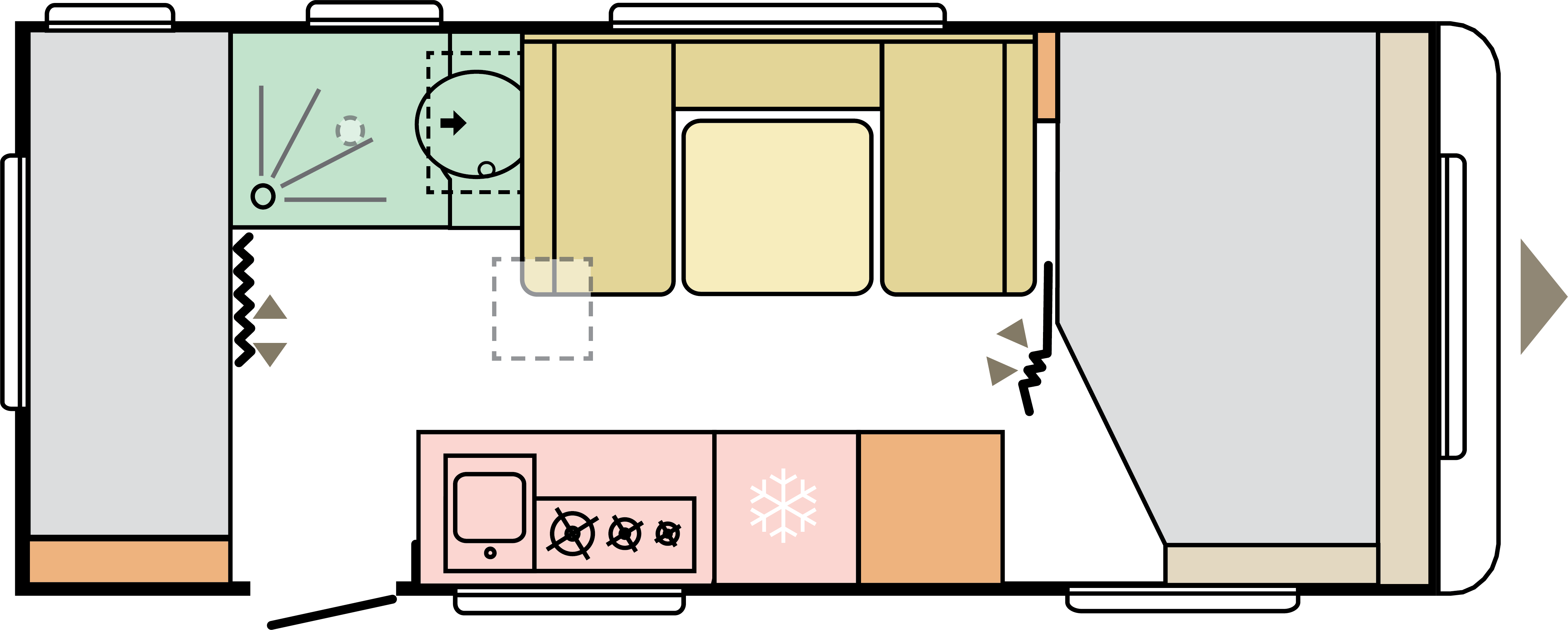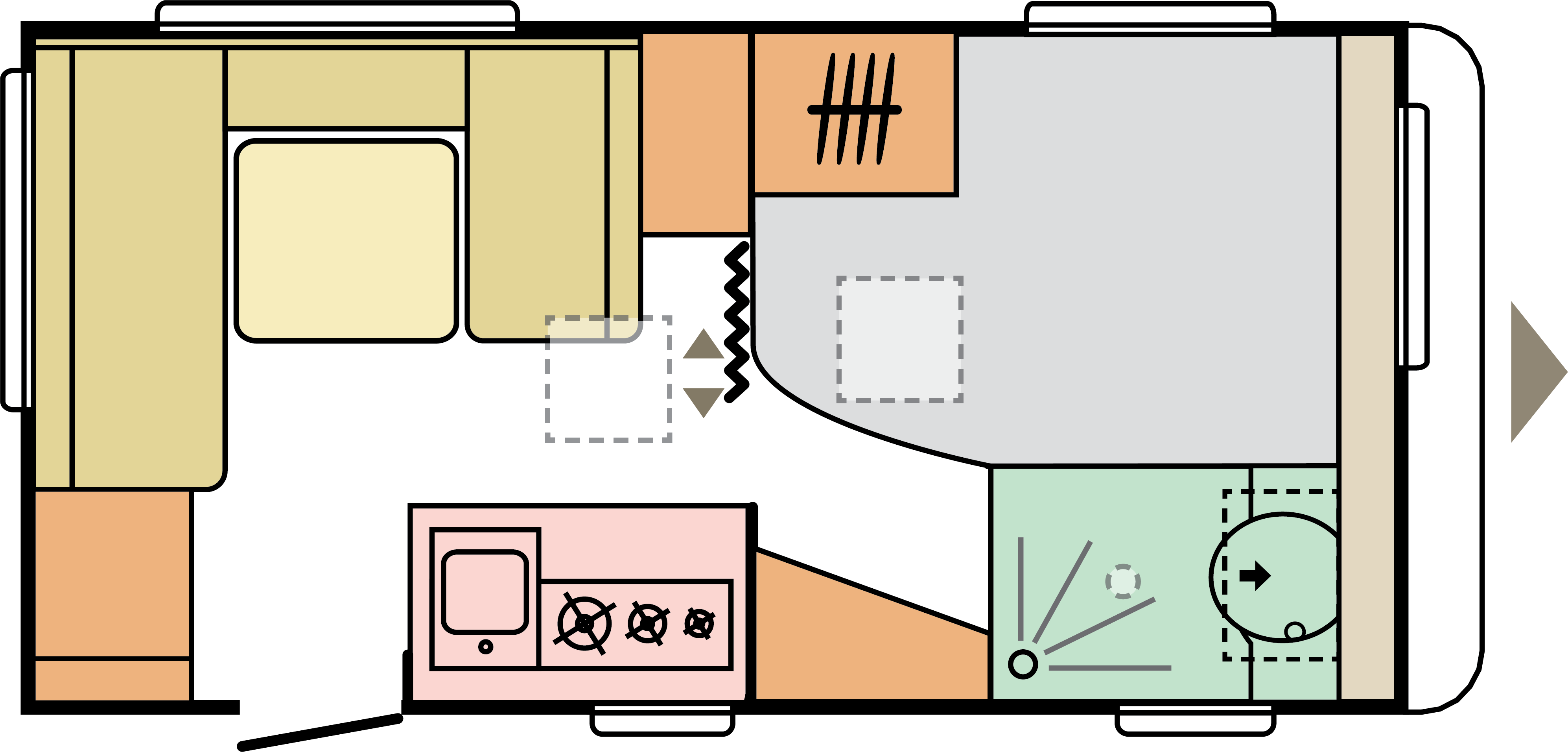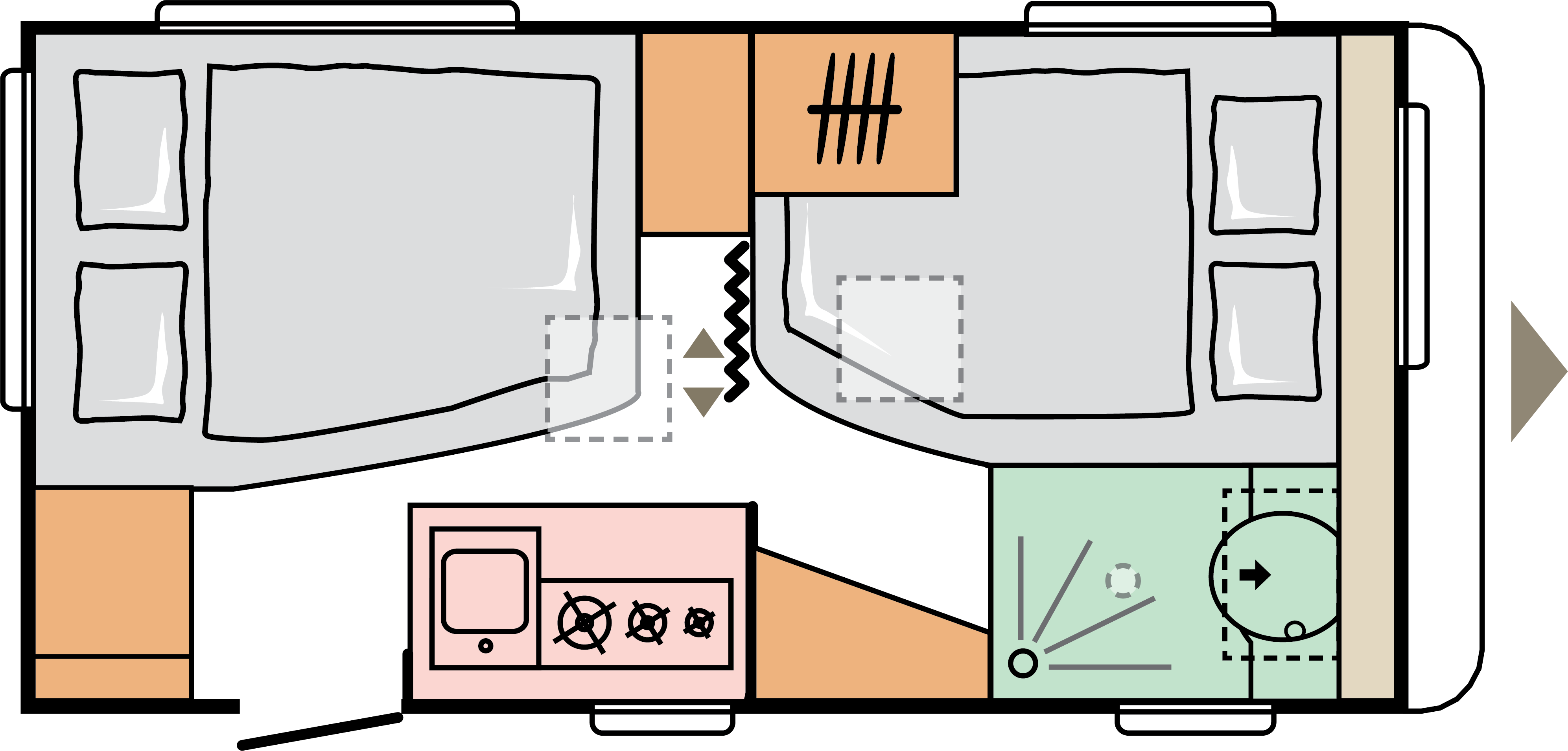 Våra husvagnar är noggrant utformade med rymliga, praktiska och bekväma interiörer.