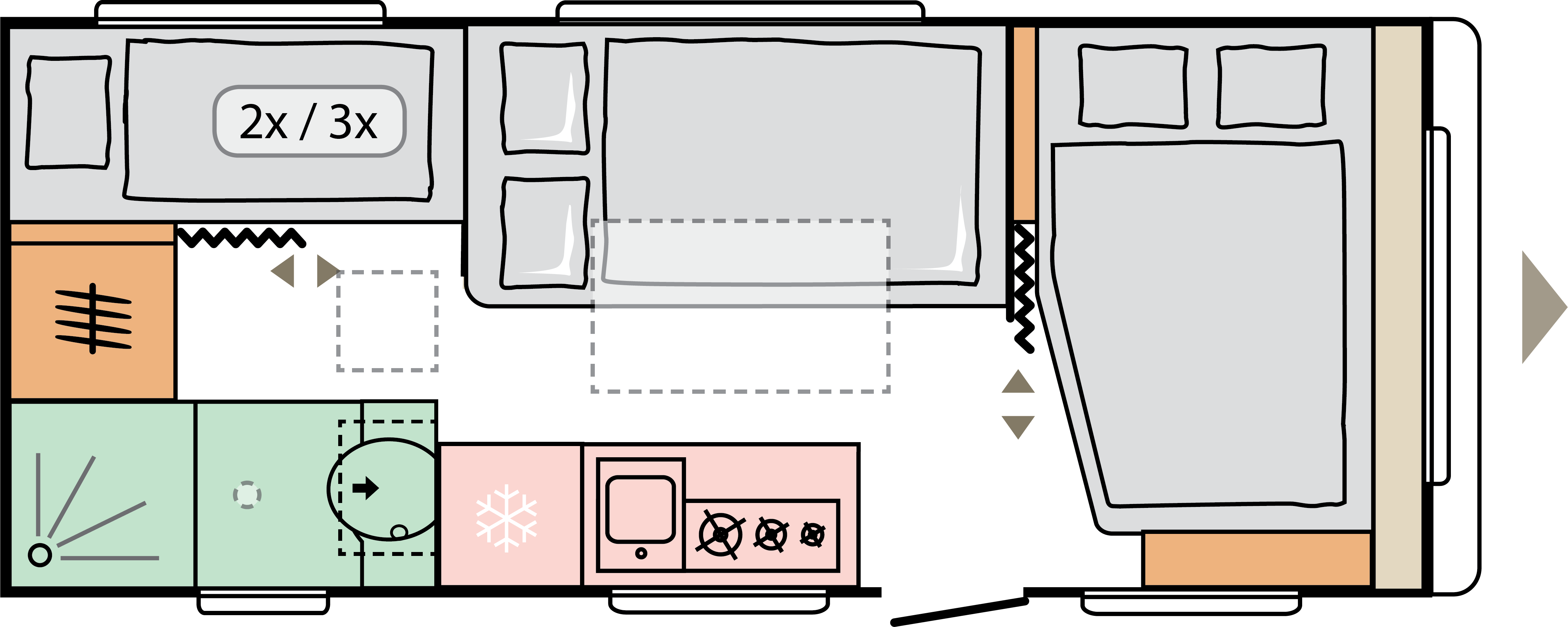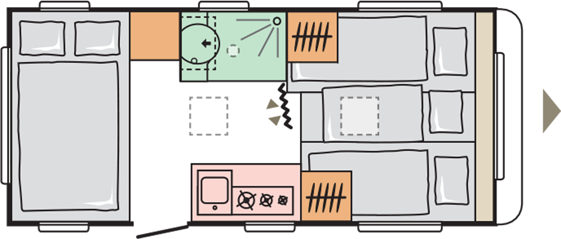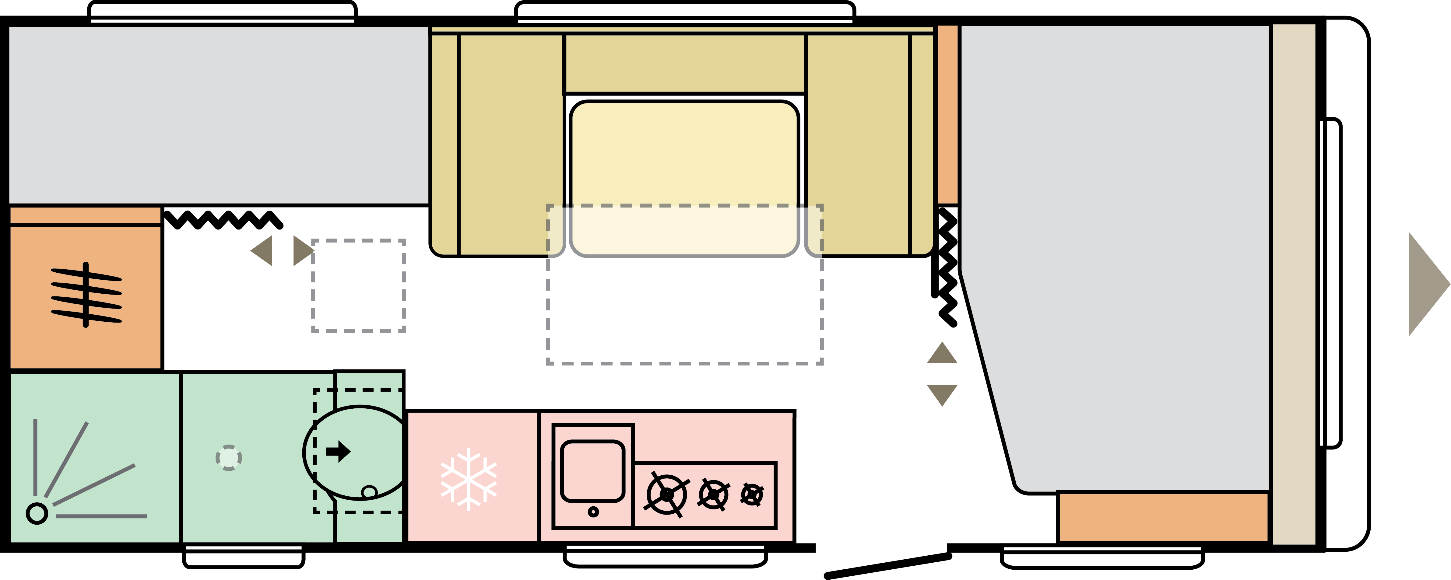 Våra husvagnar är noggrant utformade med rymliga, praktiska och bekväma interiörer.